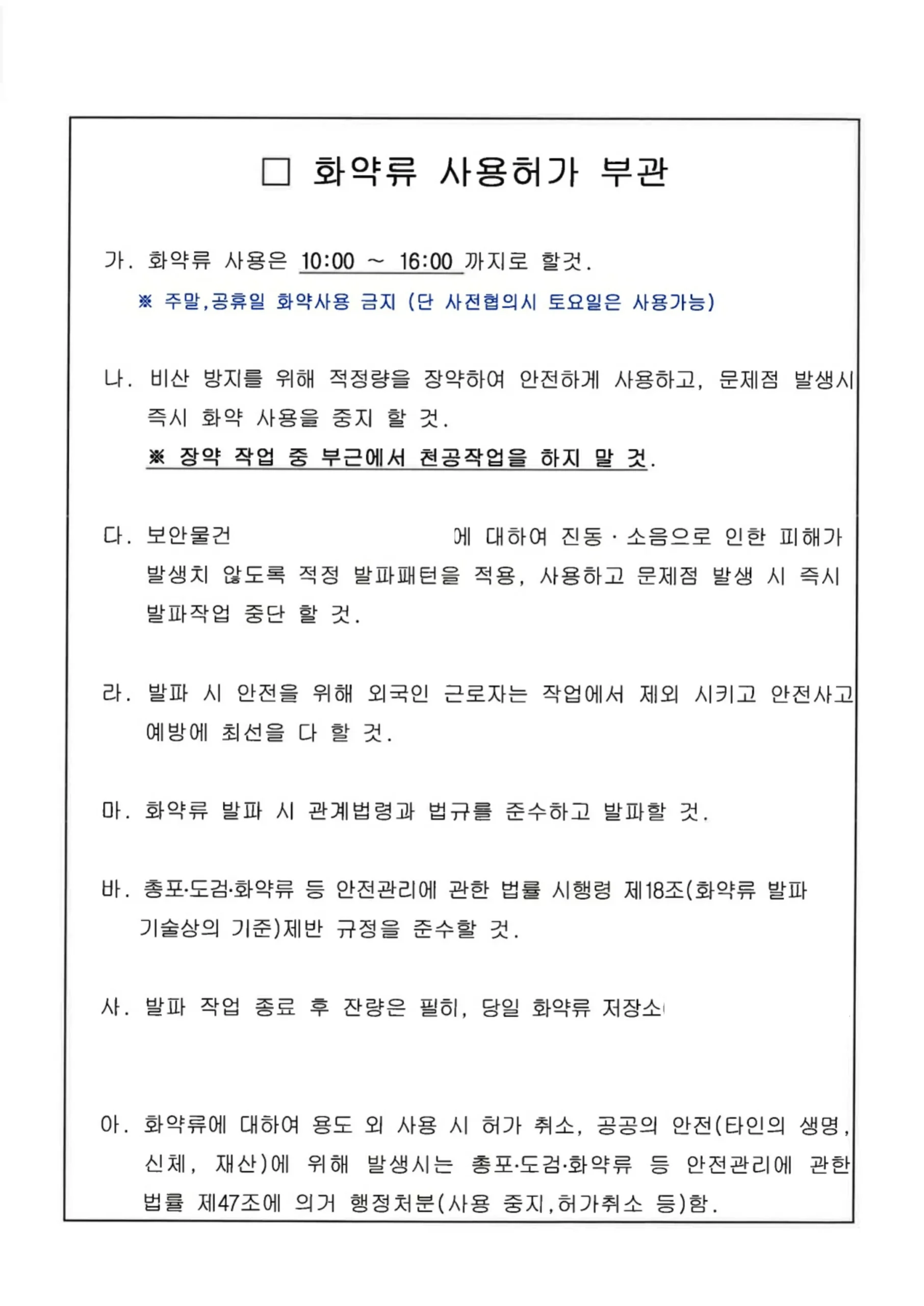 시험발파는 발파 작업 전에 실시하는, 발파로 인한 진동, 소음, 비산 등 공해 발생 정도와 파쇄 효과를 파악하기 위한 사전 발파를 의미합니다.